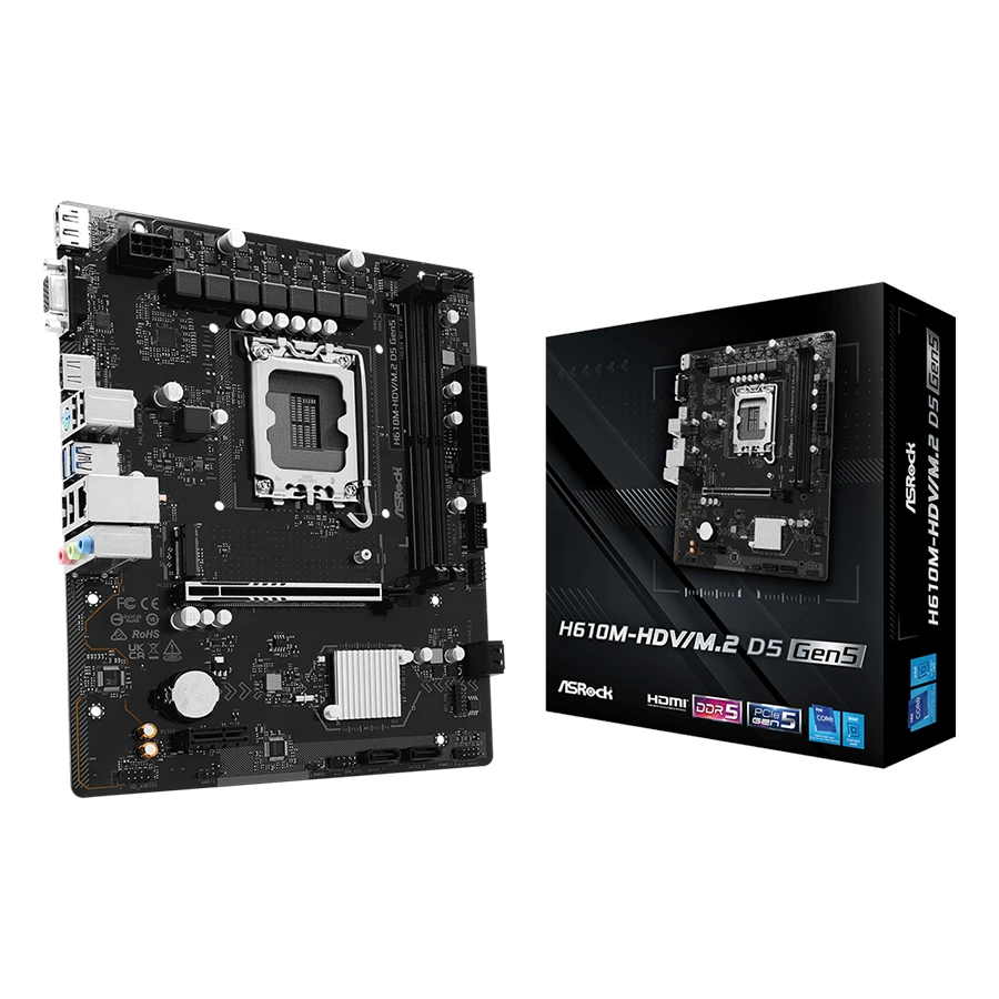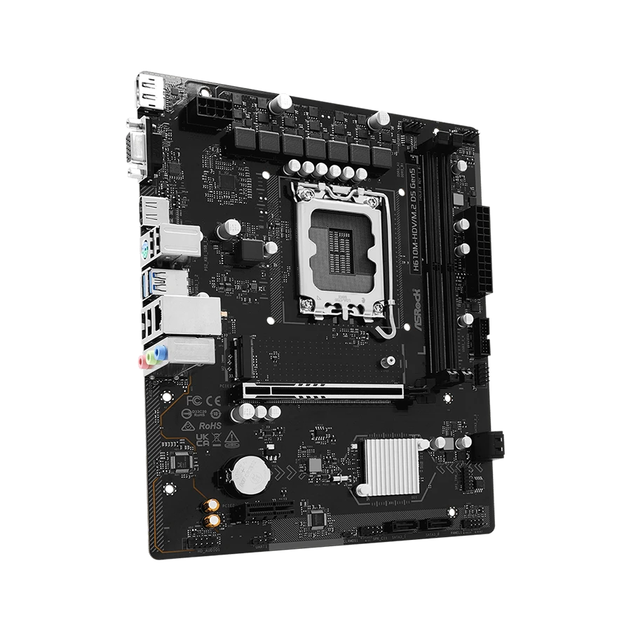 مادربرد ازراک ASRock H610M-HDV/M.2 D5 یک گزینه اقتصادی و در عین حال توانمند برای سیستم‌های نسل جدید است. این مادربرد با چیپ‌ست Intel H610 و پشتیبانی از پردازنده‌های نسل 12، 13 و 14 اینتل طراحی شده است تا نیاز کاربران خانگی و اداری را به‌خوبی برطرف کند. ترکیب کیفیت ساخت مناسب و ویژگی‌های کاربردی باعث شده تا برای اسمبل سیستم‌های میان‌رده انتخابی ایده‌آل باشد.