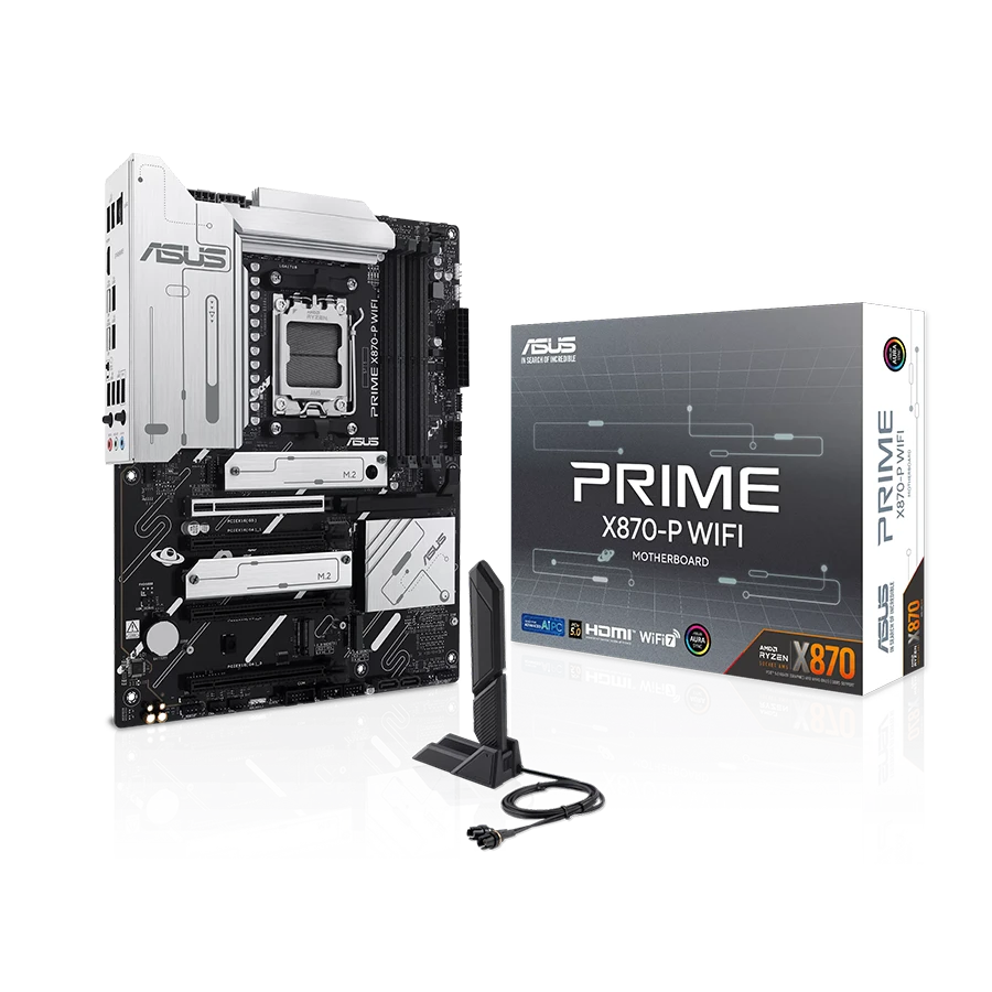 مادربرد ایسوس ASUS PRIME X870-P WIFI با طراحی مستحکم و ظاهری مدرن برای کاربران حرفه‌ای و سازندگان سیستم‌های قدرتمند طراحی شده است. ساختار 14+2+1 فاز تغذیه 80 آمپری با هیت‌سینک‌های بزرگ VRM، جریان برق پایدار و خنک‌کنندگی مؤثر را تضمین می‌کند. این طراحی باعث می‌شود تا پردازنده‌های AMD Ryzen سری 9000 در بالاترین سطح کارایی خود عمل کنند و در شرایط سنگین نیز ثبات کامل داشته باشند.