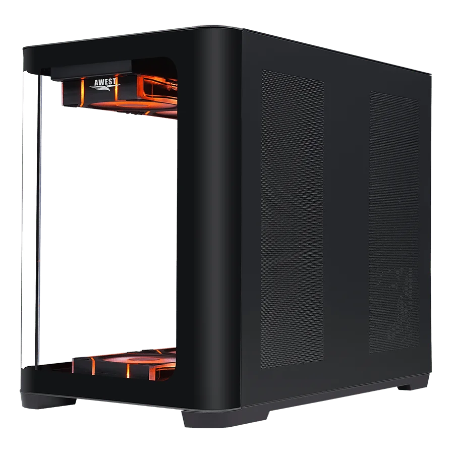 کیس گیمینگ اوست AWEST GT-AQ18-MB یکی از محصولات خاص برند اوست با طراحی مدرن است که با ترکیبی از اجزای مشبک و پانورامیک برای کاربرانی که به نورپردازی، تهویه و امکانات مدرن اهمیت میدهند ارائه میدهد. پنل جانبی به طور کامل شیشهای است و نمایی زیبا را فراهم میکند.