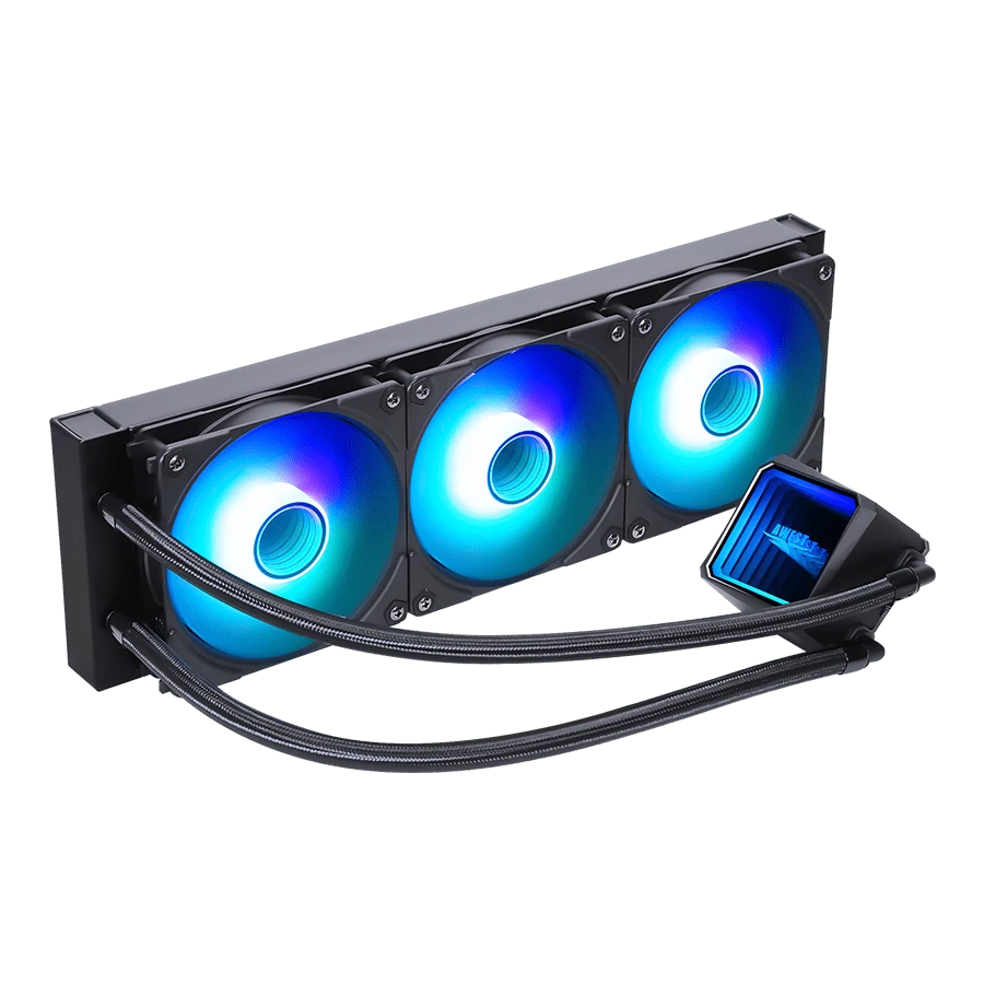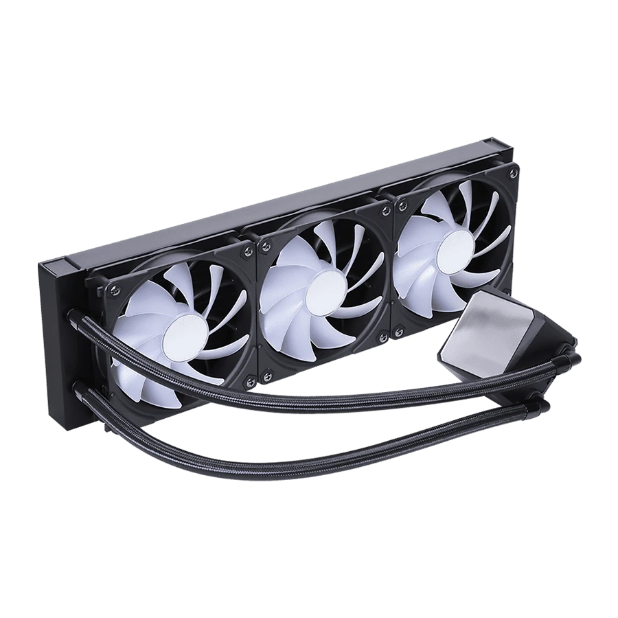 سه فن 120 میلی‌متری مجهز به نورپردازی ARGB، تهویه‌ای قدرتمند و در عین حال کم‌صدا تولید می‌کنند. فن‌ها با سرعت 900 تا 1800 دور در دقیقه می‌چرخند و جریان هوایی معادل 76.67 فوت مکعب در دقیقه ایجاد می‌کنند. این شدت جریان هوا باعث کاهش سریع دمای پردازنده شده و عملکرد پایدار سیستم تحت فشارهای طولانی‌مدت را تضمین می‌کند.