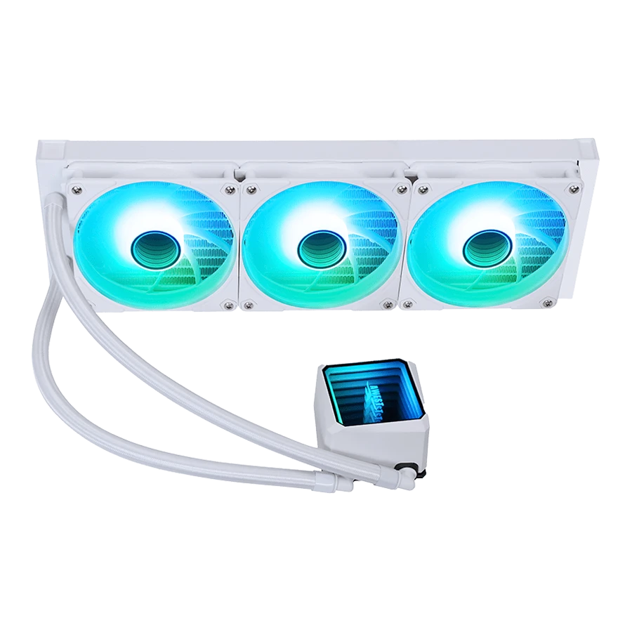 سه فن 120 میلیمتری مجهز به نورپردازی ARGB، تهویهای قدرتمند و در عین حال کمصدا تولید میکنند. فنها با سرعت 900 تا 1800 دور در دقیقه میچرخند و جریان هوایی معادل 76.67 فوت مکعب در دقیقه ایجاد میکنند. این شدت جریان هوا باعث کاهش سریع دمای پردازنده شده و عملکرد پایدار سیستم تحت فشارهای طولانیمدت را تضمین میکند.