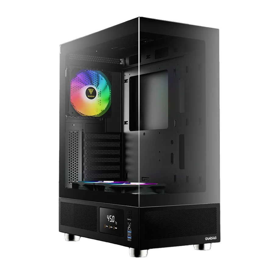 کیس گیمینگ گیمدیاس Gamdias ATLAS E1 یکی از محصولات خاص برند گیم دیاس است که با ساختار Mid-Tower و طراحی مدرن شامل پنلهای شیشهای تمامنما در جلو و جانبی است که نمایی بدون درز از قطعات داخلی را به نمایش میگذارد. همچنین دارای سیستم نورپردازی ARGB با سه فن PWM و مانیتور دیجیتال داخلی است. شعار رسمی آن نیز FUNCTIONALITY WITH SEAMLESS VISUALS است، که ترکیبی از عملکرد و زیبایی به همراه کنترل حرفهای را عرضه میکند.