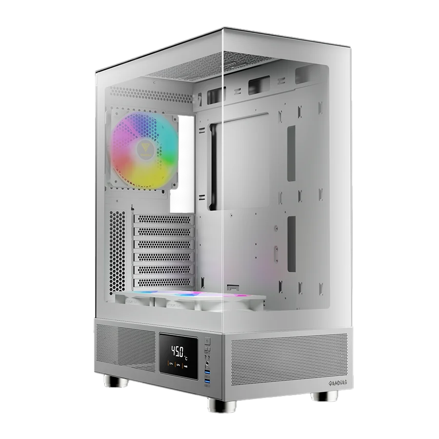 کیس گیم‌دیاس مدل Gamdias ATLAS E1 WH یکی از محصولات خاص برند گیم دیاس است که با ساختار Mid-Tower و طراحی مدرن شامل پنل‌های شیشه‌ای تمام‌نما در جلو و جانبی است که نمایی بدون درز از قطعات داخلی را به نمایش میگذارد. همچنین دارای سیستم نورپردازی ARGB با سه فن PWM و مانیتور دیجیتال داخلی است. شعار رسمی آن نیز FUNCTIONALITY WITH SEAMLESS VISUALS است، که ترکیبی از عملکرد و زیبایی به همراه کنترل حرفه‌ای را عرضه می‌کند.