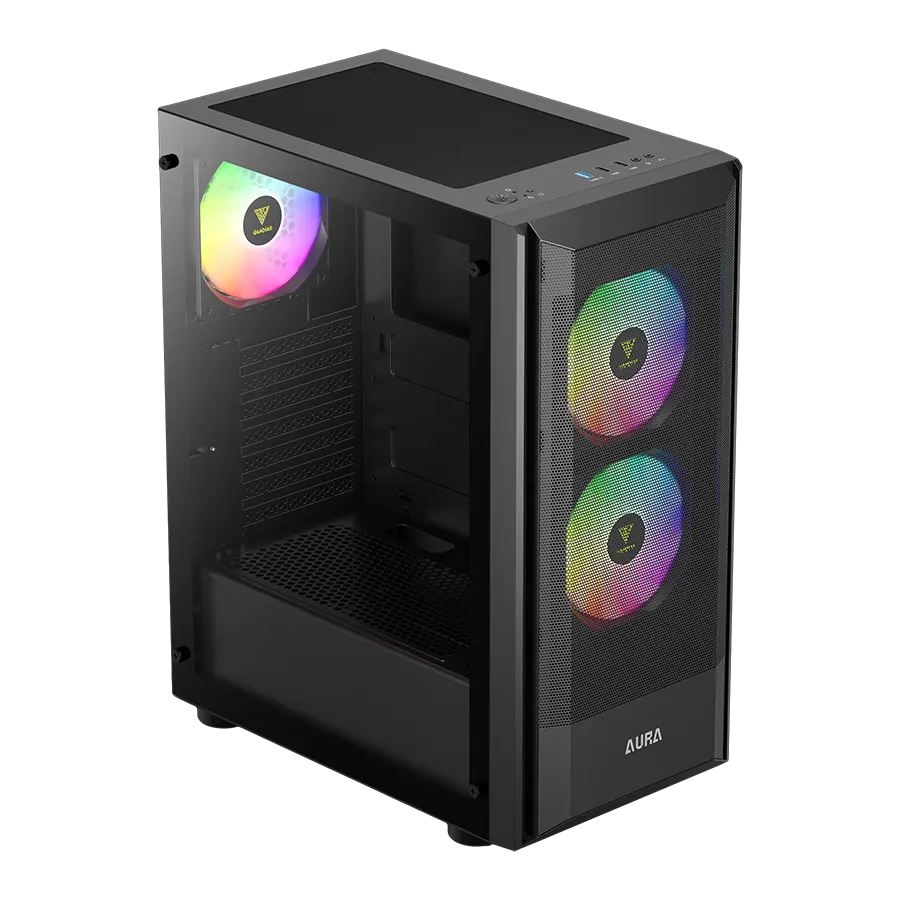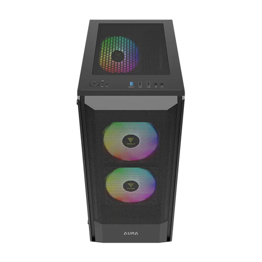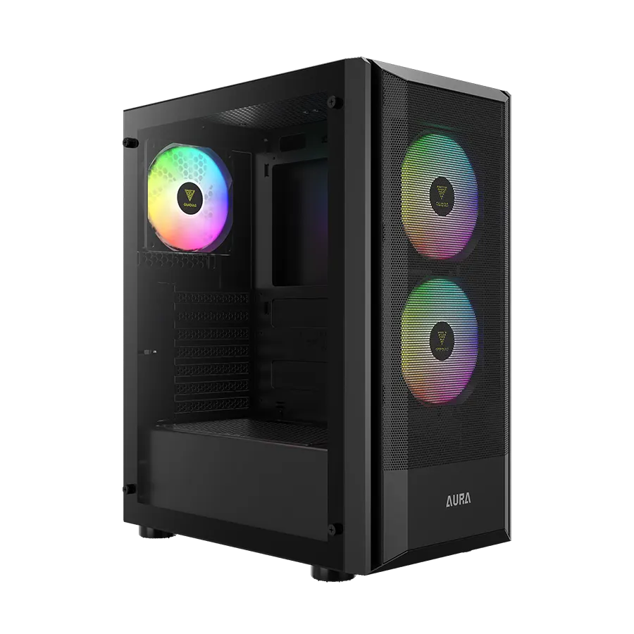 AURA GC6 با جلوه‌ای شیک و ساده عرضه می‌شود. پنل جلویی مشبک جریان هوای مطلوبی را ایجاد می‌کند و پنل کناری شیشه‌ای سکوریت، نمایی کامل از قطعات داخلی و نورپردازی ARGB سیستم شما ارائه می‌دهد.