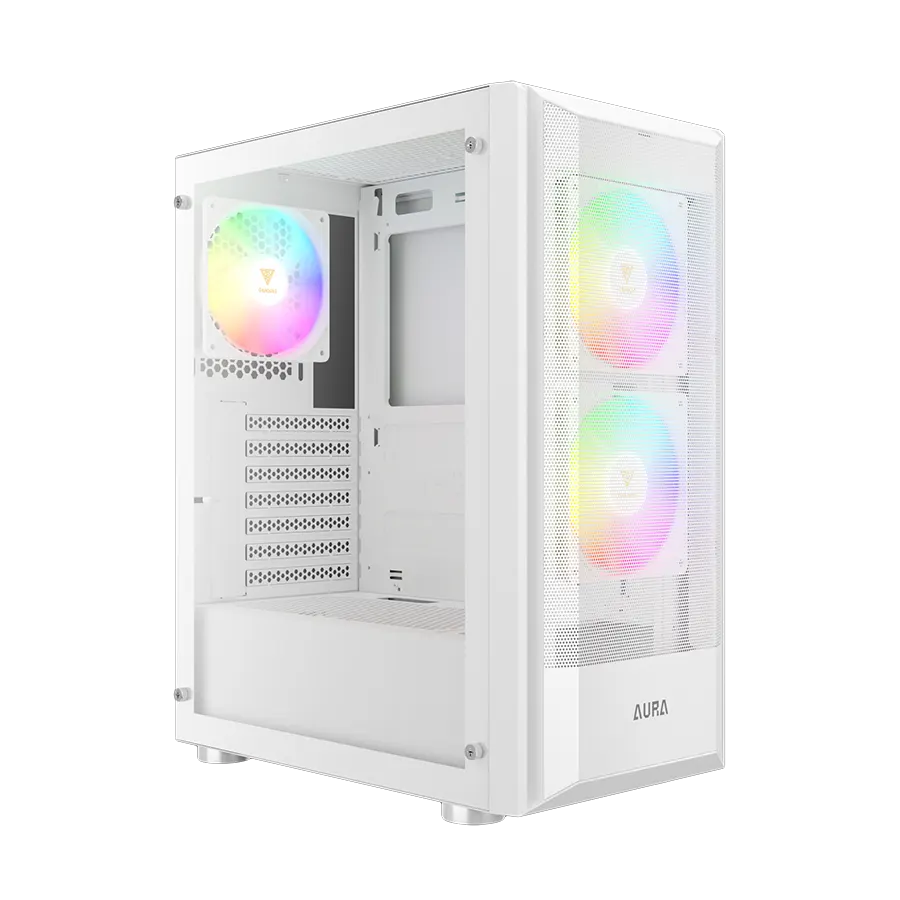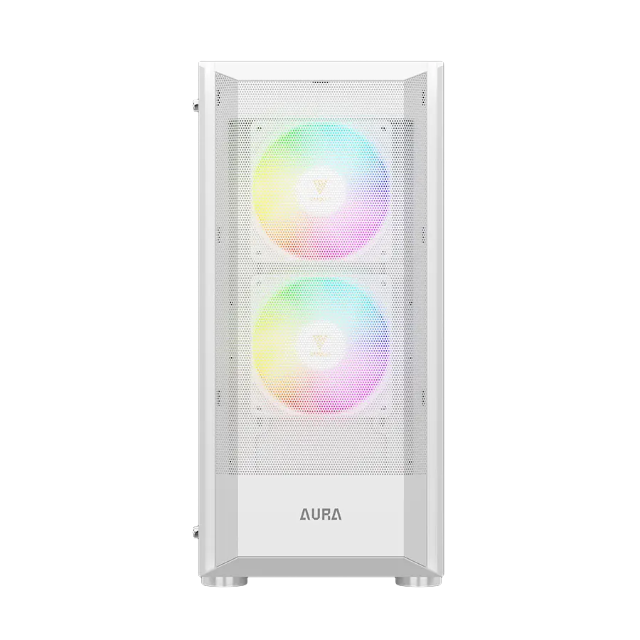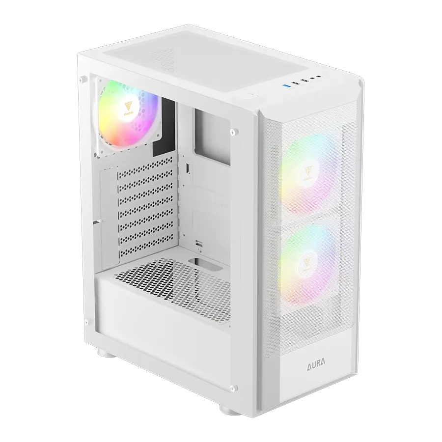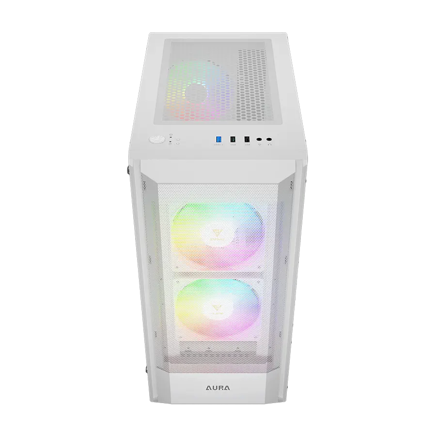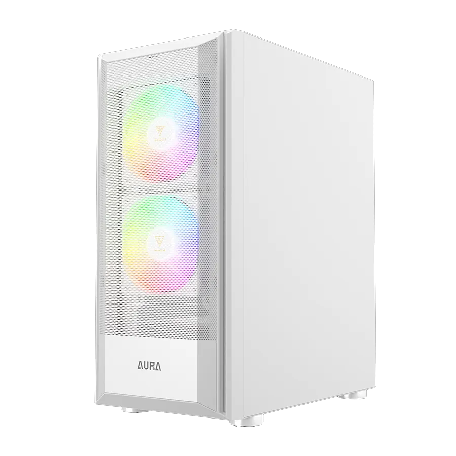 AURA GC6 WH با جلوه‌ای شیک و ساده عرضه می‌شود. پنل جلویی مشبک جریان هوای مطلوبی را ایجاد می‌کند و پنل کناری شیشه‌ای سکوریت، نمایی کامل از قطعات داخلی و نورپردازی ARGB سیستم شما ارائه می‌دهد.