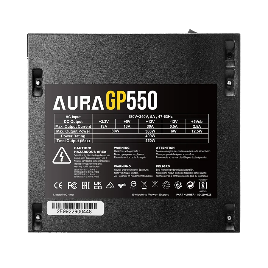 پاور – منبع تغذیه کامپیوتر گیم دیاس GAMDIAS AURA GP550 یک انتخاب مطمئن و قدرتمند برای سیستمهای گیمینگ و حرفهای است که توان خروجی ۵۵۰ وات را با بازدهی مطابق با استاندارد 80PLUS White ارائه میدهد. این پاور با طراحی سازگار با استاندارد ATX12V v2.4 و ابعاد جمعوجور 86×150×140 میلیمتر، بهراحتی در انواع کیسهای Mid و Full Tower نصب میشود. ورودی برق ۱۸۰-۲۴۰ ولت و سیستم حفاظتی کامل شامل OVP، UVP، OPP، OCP، SCP تضمین میکند که سختافزار شما در برابر نوسانات و خطرات برقی کاملاً ایمن بماند.
