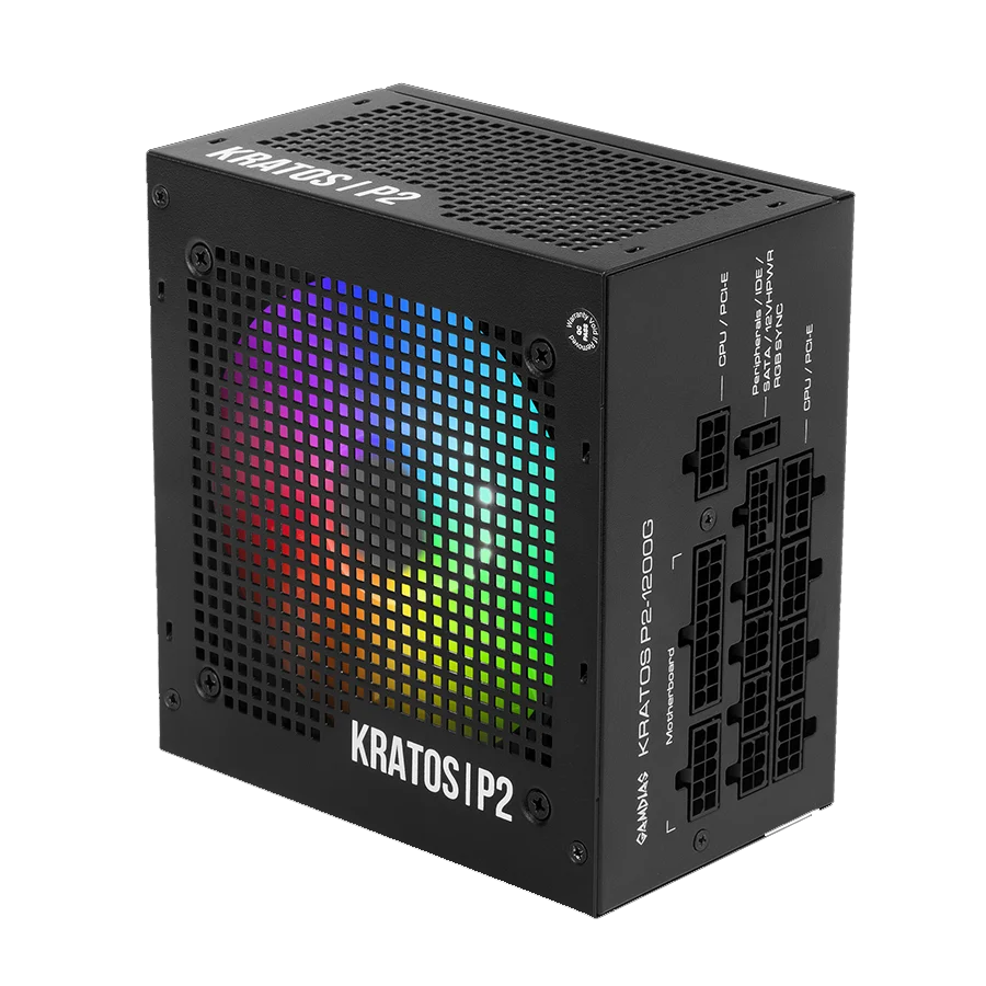 پاور و منبع تغذیه کامپیوتر گیم دیاس Gamdias Kratos P2-1200G دارای سیستم خنککنندگی شامل یک فن 120 میلیمتری هیدرولیکی است. این فن حالت Silent Mode برای کاهش نویز دارد. نورپردازی 30 حالت Neon-Flex RGB با همگامسازی از طریق 5V 3-pin ARGB پشتیبانی میشود. وجود فناوری DC to DC و استاندارد ErP Lot 6 مصرف انرژی را بهینه میکند.