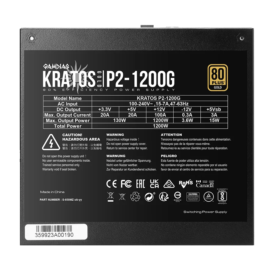 پاور گیمینگ گیم دیاس KRATOS P2-1200G یک منبع تغذیه حرفهای با توان واقعی 1200 وات است. این مدل از استاندارد ATX12V v3.0 پشتیبانی میکند. راندمان آن با گواهینامه 80PLUS Gold تضمین شده و دارای Active PFC با ضریب توان 0.99 است.