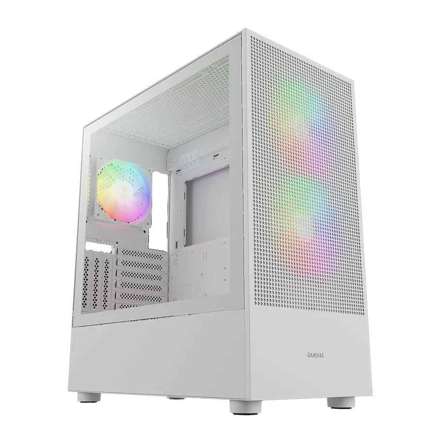 کیس گیمینگ گیم دیاس Gamdias TALOS M3 MESH WH یکی از محصولات خاص برند گیم دیاس با طراحی مینیمال و بدنهای مشبک ساخته شده تا هم تهویه بهینهای برای قطعات فراهم کند و هم ظاهری مدرن و جذاب به سیستم ببخشد. پنل شیشهای در کنار نورپردازی ARGB نمایی کامل از سختافزار داخلی ارائه میدهد.