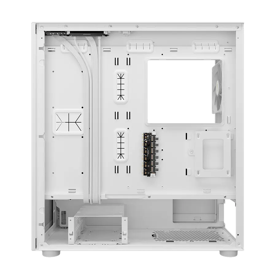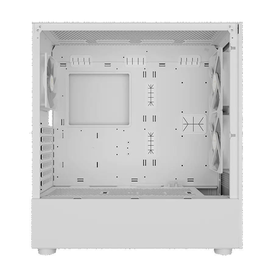 طراحی مشبک در بخش جلو و بالای کیس، جریان هوای مداومی ایجاد میکند. همچنین پشتیبانی از نصب چندین فن ۱۲۰/۱۴۰ میلیمتری و رادیاتورهای خنککننده مایع، شرایط ایدهآلی برای کنترل دما و افزایش طول عمر قطعات سختافزاری فراهم میسازد.