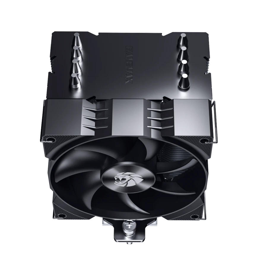 بدنه این خنک‌کننده از فین‌های آلومینیومی مشکی‌رنگ با پوشش سطحی اسپری روغنی تشکیل شده است. طراحی بالایی فین‌ها با رنگ مشکی تیره، جلوه‌ای صنعتی و مقاوم ایجاد می‌کند. فن با ظاهر مکانیکی و فرم جسورانه، هماهنگی کاملی با سبک گیمینگ بدنه ایجاد می‌کند. این طراحی باعث می‌شود خنک‌کننده در سیستم‌های شیشه‌ای جلوه‌ای شاخص داشته باشد. ارتفاع 128 میلی‌متری دستگاه امکان نصب در اغلب کیس‌های رایج بازار را فراهم می‌کند.