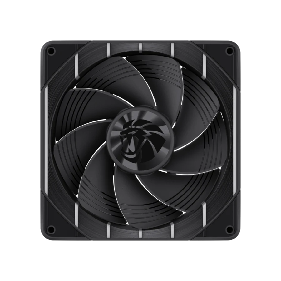 طراحان این فن از نه پره با فرم داسیشکل استفاده کردهاند تا آشفتگی جریان هوا کاهش پیدا کند. فاصلهگذاری بهینه میان پرهها، نویز آیرودینامیکی را بهطور محسوس کاهش میدهد. این طراحی مهندسیشده بیش از بیست درصد کاهش صدا نسبت به طراحیهای معمول ایجاد میکند. فن در عین تولید جریان هوای بالا، صدای بسیار کنترلشده و یکنواختی تولید میکند.