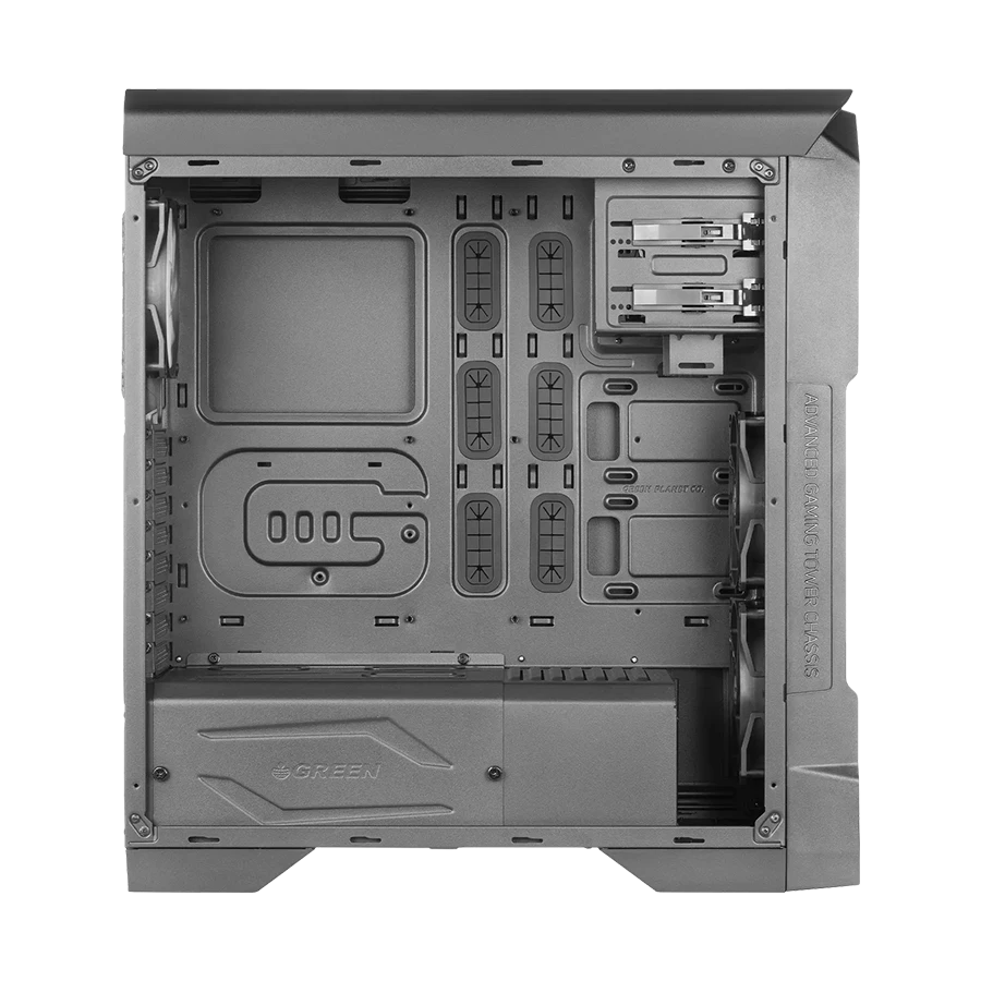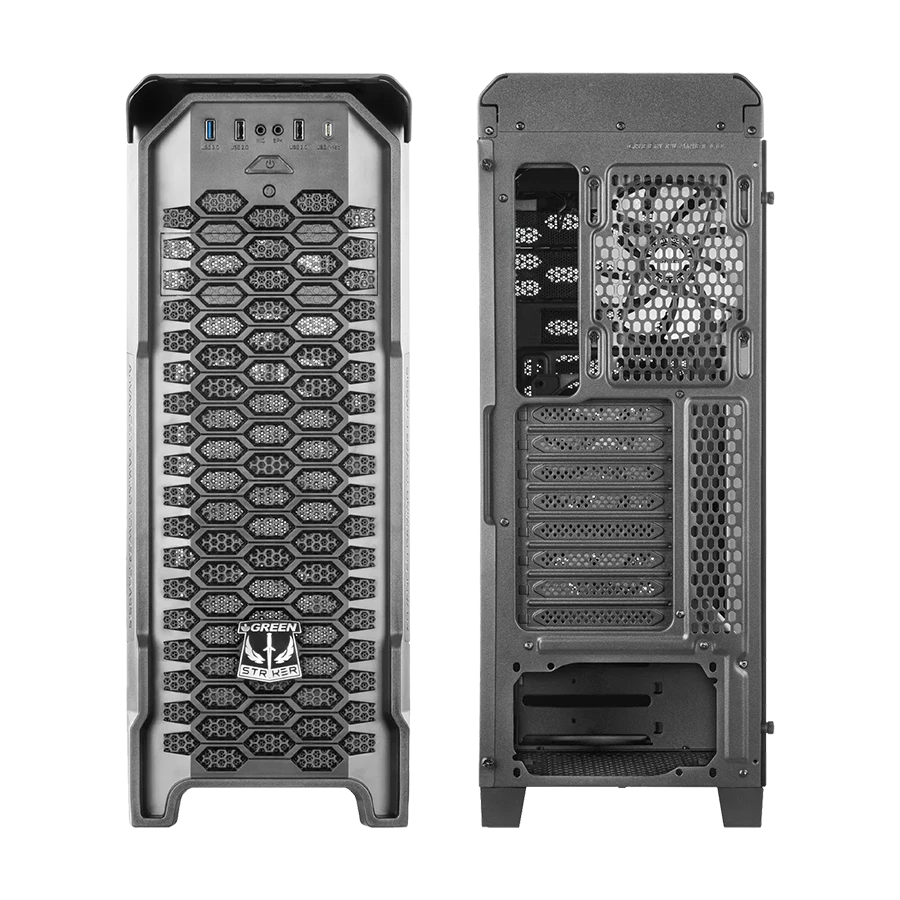 کیس Green STRIKER FRGB فضای داخلی بهینهای ارائه داده و امکان نصب مادربردهای Mini-ITX تا CEB، کارت گرافیک تا طول 390 میلیمتر و کولر بادی تا ارتفاع 160 میلیمتر را فراهم میکند. وجود هشت اسلات توسعه امکان نصب چند کارت گرافیک را ایجاد کرده و شرایط لازم برای سیستمهای پردازش حرفهای، GPGPU و پلتفرمهای هوش مصنوعی را مهیا میسازد. علاوه بر آن، طراحی داخلی به گونهای انجام شده که با وجود ابعاد نهچندان حجیم، محدودیت جدی در انتخاب قطعات ایجاد نمیشود.