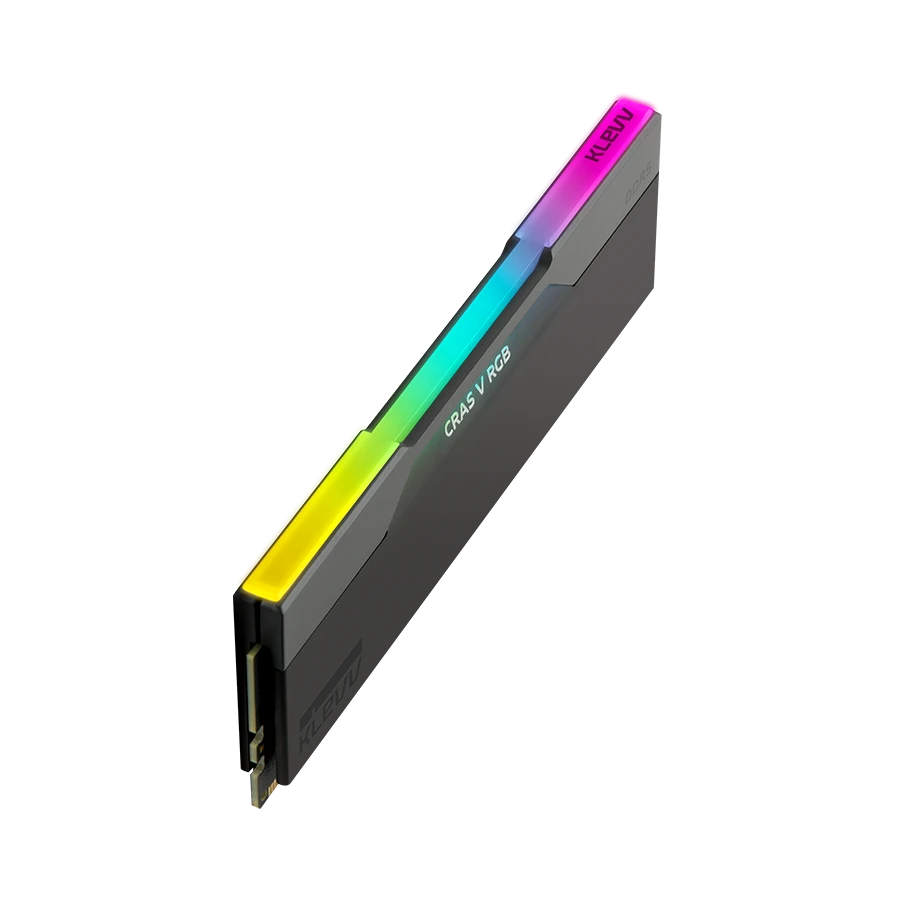 یکی از نقاط قوت اصلی KLEVV CRAS V RGB نورپردازی کامل RGB با قابلیت هماهنگی نرم‌افزاری است. این ویژگی امکان خلق بی‌نهایت ترکیب نوری را با استفاده از نرم‌افزارهای کنترل مادربرد به کاربر می‌دهد. طراحی خطی و توخالی، نور را از بالا تا کناره‌ها پخش کرده و زیبایی خاصی ایجاد می‌کند. به این ترتیب می‌توانید سبک شخصی خود را برای سیستم گیمینگ یا کاری به نمایش بگذارید.