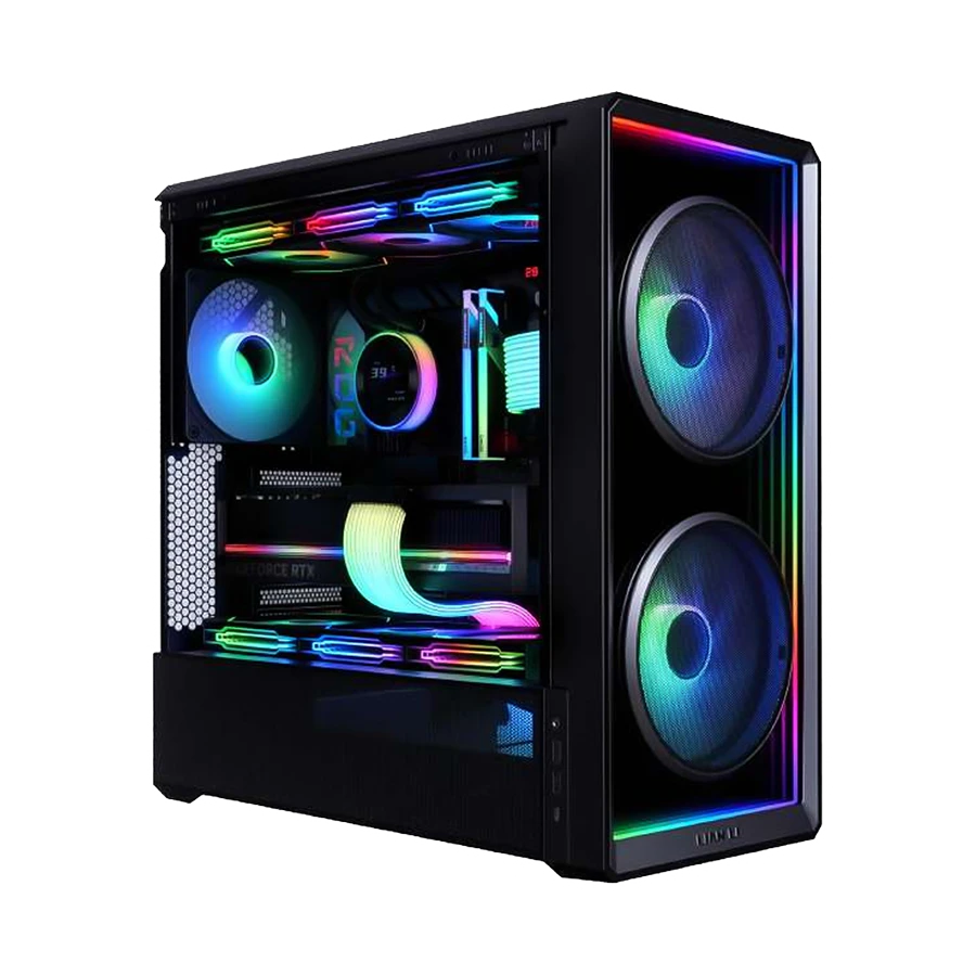 کیس گیمینگ لیان لی Lian Li LANCOOL 217 INF Black با طراحی مدرن و مینیمال عرضه شده است. پنل جلویی آن از شیشه حرارتدیده ساخته شده و دارای افکت اینفینیتی میرور میباشد. این طراحی علاوه بر زیبایی، نورپردازی ARGB فنهای جلو را به شکلی خیرهکننده نمایش میدهد. همچنین وجود دو برش دقیق در پنل جلو باعث میشود جریان هوای قوی حفظ شود. ترکیب این ویژگیها باعث میشود این کیس نقطهی کانونی چشمگیری در هر سیستم گیمینگ باشد.