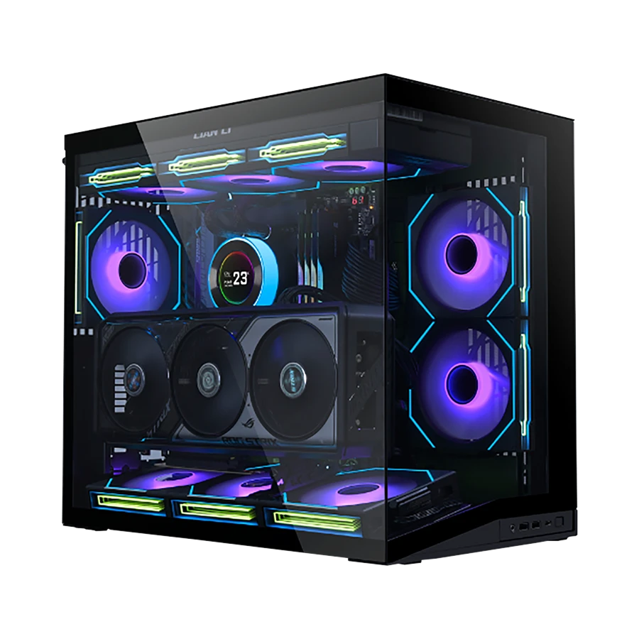کیس گیمینگ لیان لی Lian Li O11D MINI V2 Black با طراحی مدرن و شیشه‌ای خود، جلوه‌ای حرفه‌ای و چشم‌نواز به سیستم شما می‌بخشد. این کیس از شیشه سکوریت بدون ستون در بخش جلو و کناره‌ها بهره می‌برد. ابعاد دقیق 45.38 لیتر این شاسی به گونه‌ای بهینه شده تا فضای داخلی گسترده‌ای با حداقل اشغال فضا ارائه دهد. استفاده از پنل‌های آلومینیومی و شیشه‌ای باعث افزایش مقاومت و زیبایی ساختاری شده و در عین حال ظاهر سیستم را بسیار تمیز و حرفه‌ای نمایش می‌دهد.