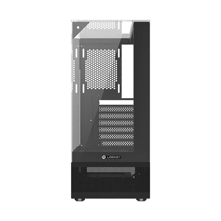 کیس گیمینگ لاجیکی Logikey C290B با پنل جلویی شیشهای، جلوهای ساده و مدرن به میز کار کاربر میبخشد. پنل کناری چپ از شیشه حرارتدیده ساخته شده و نمای قطعات داخلی را بهصورت واضح نمایش میدهد. پنل سمت راست با طراحی فلزی برجسته، استحکام مناسبی برای بدنه ایجاد میکند. ترکیب فولاد و شیشه، تعادل مناسبی میان دوام فیزیکی و زیبایی بصری فراهم میسازد. ابعاد جمعوجور کیس، استفاده در فضاهای محدود و میزهای کوچک را کاملاً ممکن میکند.