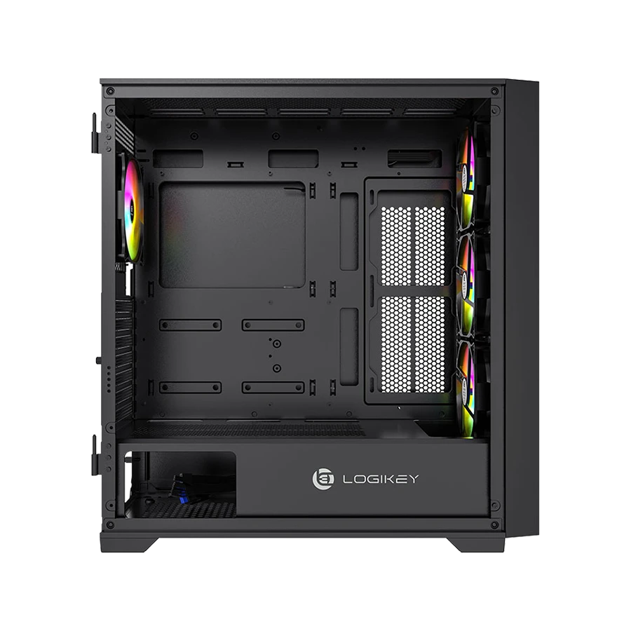 کیس Logikey C511B فضای داخلی بسیار جاداری برای نصب قطعات حرفهای و قدرتمند در اختیار کاربران قرار میدهد. این کیس از مادربردهای ATX، E-ATX، ITX و M-ATX بهصورت کامل پشتیبانی میکند. امکان نصب کارت گرافیک تا طول ۴۰۰ میلیمتر بدون محدودیت فراهم شده است. ارتفاع مجاز خنککننده پردازنده تا ۱۶۸ میلیمتر در نظر گرفته شده است. محل نصب منبع تغذیه در بخش پایینی کیس قرار دارد و به بهبود گردش هوا کمک میکند. طول مجاز پاور تا ۲۴۵ میلیمتر برای انواع پاورهای حرفهای کاملاً مناسب است.
