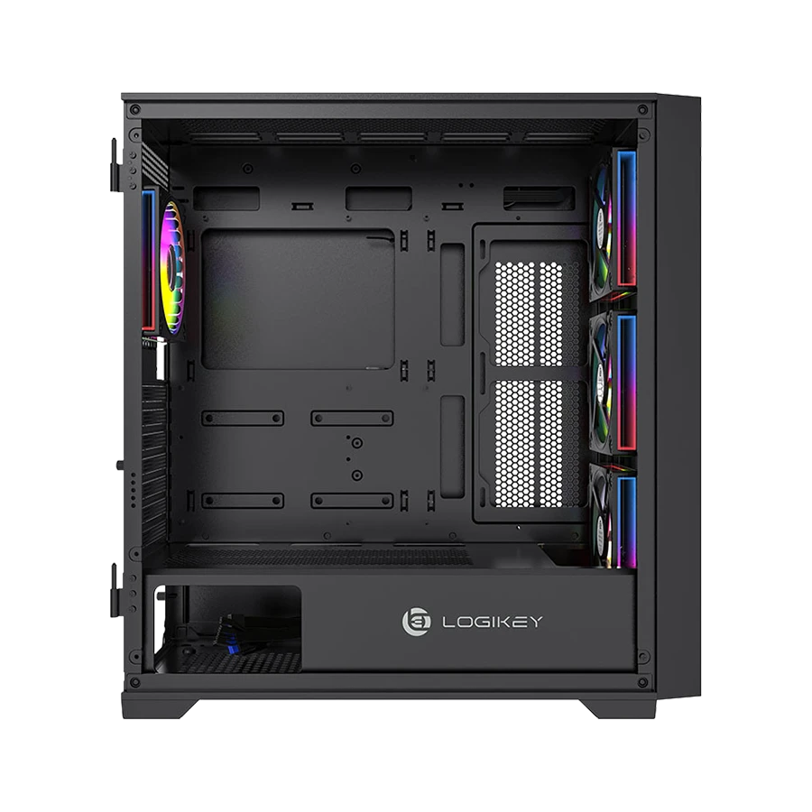 کیس Logikey C511B فضای داخلی بسیار جاداری برای نصب قطعات حرفهای و قدرتمند در اختیار کاربران قرار میدهد. این کیس از مادربردهای ATX، E-ATX، ITX و M-ATX بهصورت کامل پشتیبانی میکند. امکان نصب کارت گرافیک تا طول ۴۰۰ میلیمتر بدون محدودیت فراهم شده است. ارتفاع مجاز خنککننده پردازنده تا ۱۶۸ میلیمتر در نظر گرفته شده است. همچنین طول مجاز پاور تا ۲۴۵ میلیمتر برای انواع پاورهای حرفهای کاملاً مناسب است.