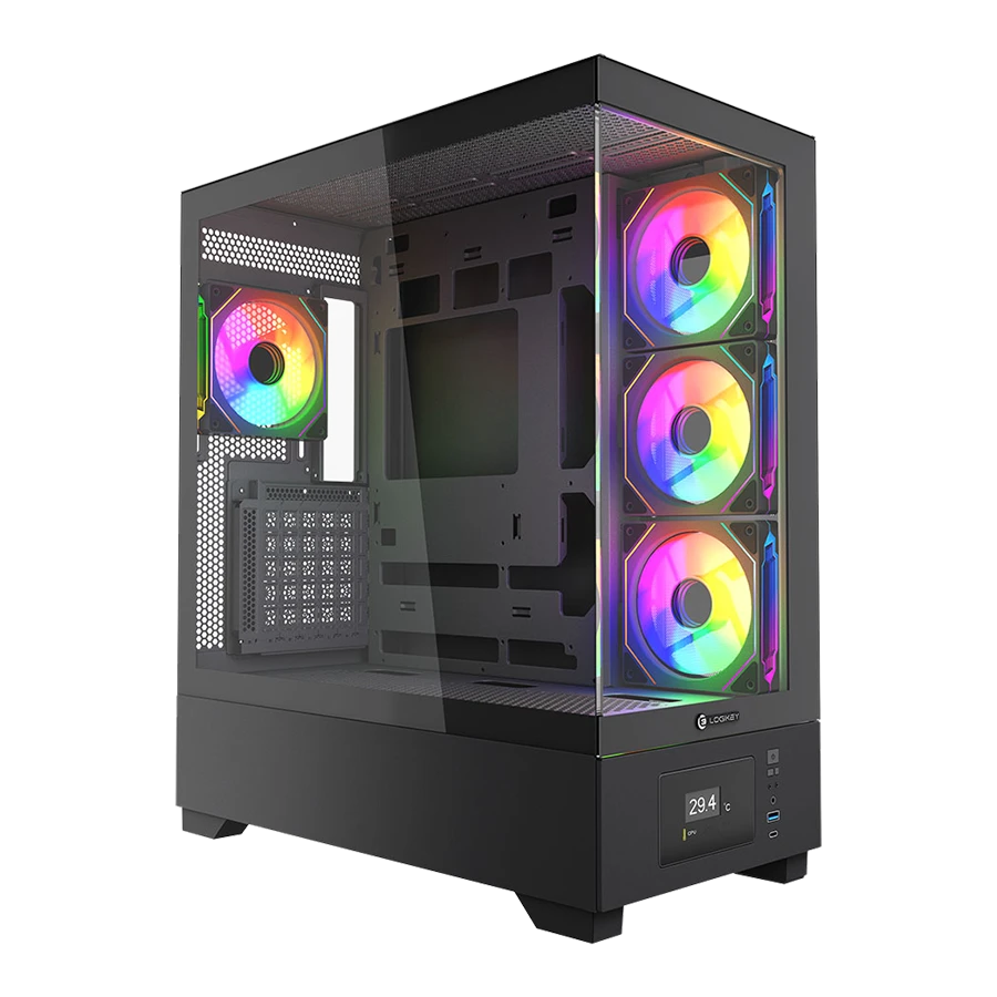 کیس گیمینگ Logikey C674B از سیستم خنک‌کنندگی کارآمدی برای حفظ دمای قطعات بهره می‌برد. چهار فن از پیش نصب‌شده شامل یک فن عقب و سه فن معکوس روی سینی مادربرد هستند. پشتیبانی از فن‌های اضافی در کف کیس، امکان افزایش جریان هوا را فراهم می‌کند. وجود هاب کنترلر ARGB مدل LF-66 مدیریت نورپردازی و فن‌ها را ساده‌تر می‌سازد.