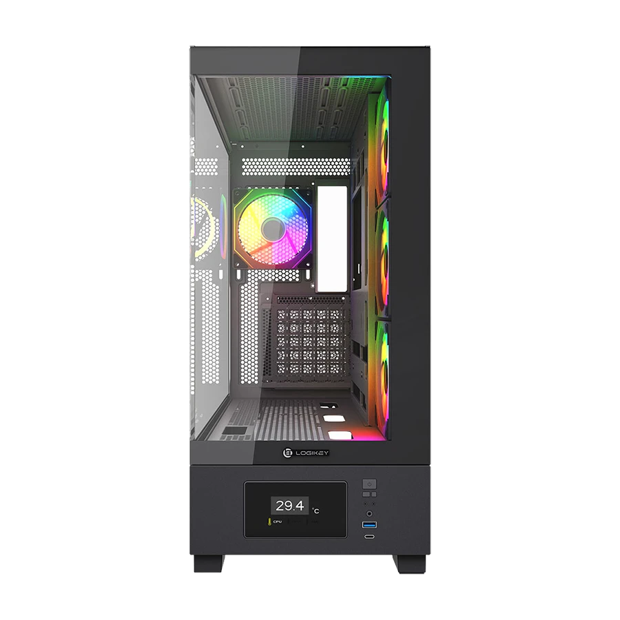 کیس گیمینگ لاجیکی Logikey C674B با رنگ مشکی و طراحی مدرن، ظاهری حرفه‌ای برای سیستم‌های گیمینگ امروزی ایجاد می‌کند. استفاده از پنل فلزی مشبک در سمت راست، جریان هوای مناسب و نمایی صنعتی به کیس می‌بخشد. این طراحی باعث افزایش تهویه و کاهش دمای قطعات داخلی در استفاده طولانی‌مدت می‌شود. ظاهر ساده اما قدرتمند این کیس، آن را برای گیمرها و کاربران حرفه‌ای بسیار جذاب می‌سازد.