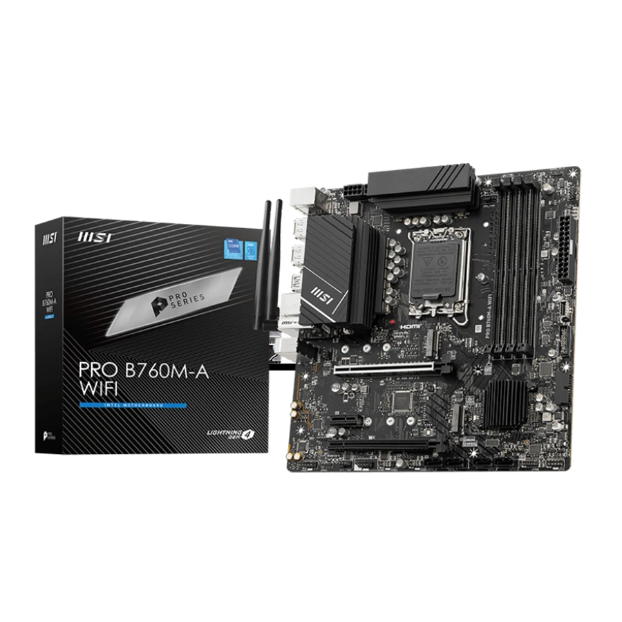 مادربرد ام اس آی MSI PRO B760M-A WIFI بهطور اختصاصی برای کاربران حرفهای طراحی شده است. این مادربرد با تمرکز بر افزایش بهرهوری، مدیریت همزمان چند وظیفه و سرعت پردازش بالا، تجربهای روان، پایدار و کاملاً قابل اعتماد را فراهم میکند.