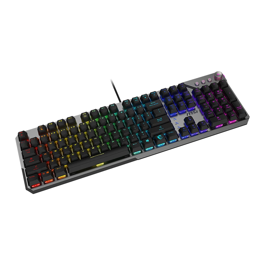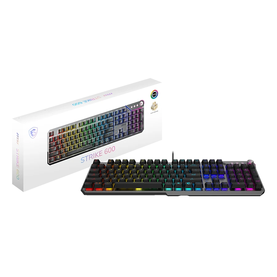کیبورد MSI STRIKE 600 دارای ولوم دوال تاچ هوشمند و کلیدهای اختصاصی برای کنترل رسانه است که تجربهای سریع و راحت فراهم میکند. علاوه بر این، پشتیبانی از قابلیت ۶+N key rollover باعث میشود چندین کلید همزمان بدون تداخل ثبت شوند. همچنین با نرمافزار MSI Center میتوان پروفایلهای مختلف تعریف و میان کار، بازی یا بهرهوری جا به جا شد.