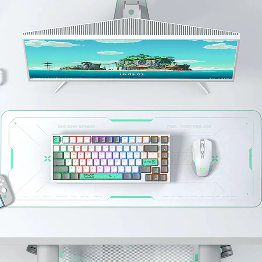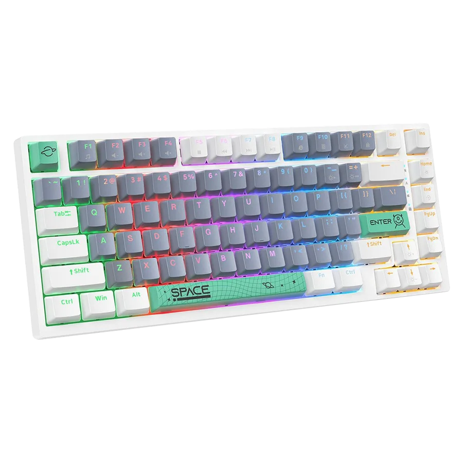 کیبورد گیمینگ اونیکوما ONIKUMA G52 White Gray با طراحی فشرده ۷۵ درصدی و 82 کلید، فضای کمتری روی میز شما اشغال کرده و همچنان تمام کلیدهای کاربردی را در اختیارتان میگذارد. کلیدها با طرحهای فانتزی، علاوه بر زیبایی ظاهری، پیدا کردن سریعتر کلیدها را ممکن میسازد. این کیبورد از سوییچهای مکانیکال بهره میبرد که بازخورد لمسی واضح، صدای کلیک رضایتبخش و پاسخدهی سریع را برای تایپ و بازی فراهم میکند. همچنین، قابلیت شخصیسازی ماکرو کلیدها از طریق نرمافزار، آن را برای هر سبک استفادهای مناسب میسازد.