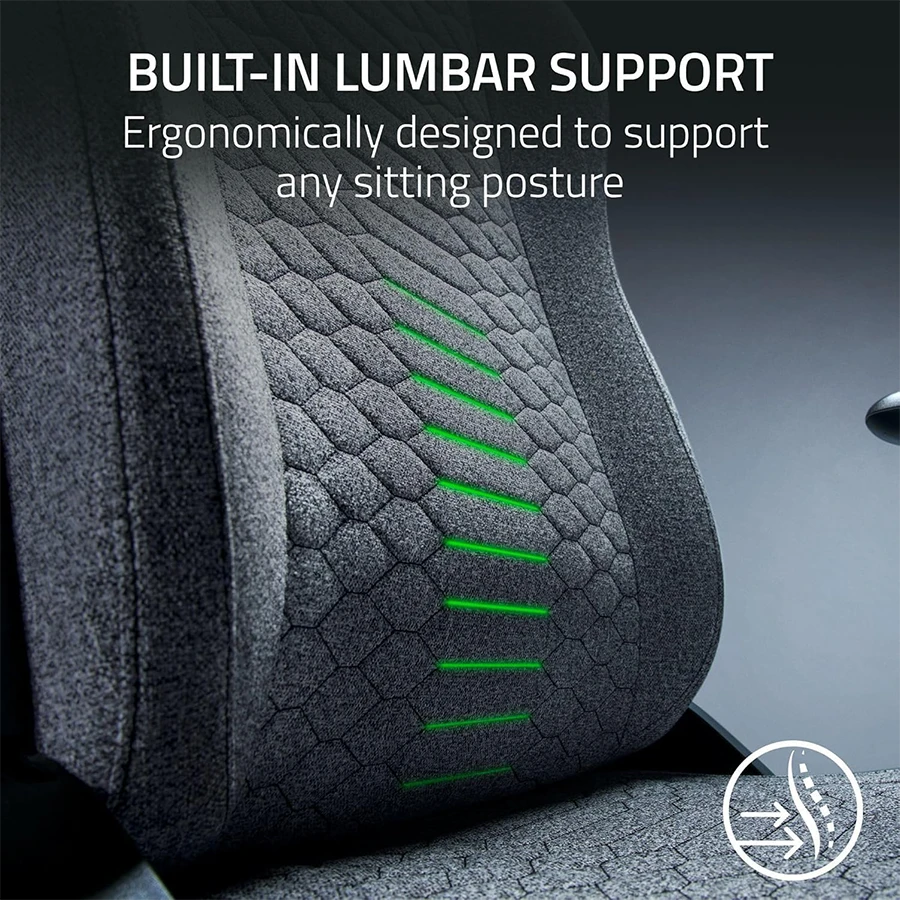 در طراحی صندلی گیمینگ Razer Iskur V2 X تمرکز ویژهای بر پشتیبانی طبیعی ستون فقرات اعمال شده است. پشتی یکپارچه با پشتیبانی کمری داخلی، فشار ناحیه کمر را در ساعات طولانی کاهش میدهد. فوم قالبی PU در بخش نشیمن و پشتی، توزیع وزن بدن را بهشکل یکنواخت انجام میدهد. روکش پارچهای چندلایه باعث گردش بهتر هوا در استفادههای طولانیمدت میشود. این ویژگی از تعریق بیشازحد و خستگی زودهنگام جلوگیری میکند.