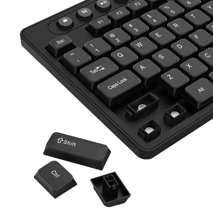 کیبورد این مجموعه دارای کلیدهای میانبر اختصاصی است که سرعت انجام وظایف را افزایش میدهد. کاربران میتوانند با یک کلیک به عملکردهای مهم مانند کنترل صدا، پخش موسیقی و تنظیمات دسترسی پیدا کنند. این ویژگی برای افرادی که به دنبال افزایش بهرهوری در محیط کاری هستند، بسیار ارزشمند است. عملکرد سریع و ساده کلیدها باعث صرفهجویی در زمان میشود. این میانبرها به شکلی هوشمندانه در طراحی کیبورد تعبیه شدهاند.