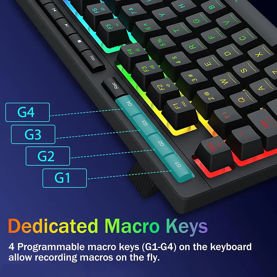 در این کیبورد از کلیدهای ممبران با پاسخدهی نرم و کمصدا استفاده شده است. عملکرد یکنواخت کلیدها برای بازی و تایپ طولانی بسیار مناسب است. قابلیت Anti-Ghosting برای 26 کلید، اجرای همزمان دستورات را تضمین میکند. وجود 5 کلید ماکرو آنبورد امکان شخصیسازی عملکردها را فراهم میسازد. همچنین چهار کلید مدیا دسترسی سریع به کنترل صدا و پخش را ممکن میکند.