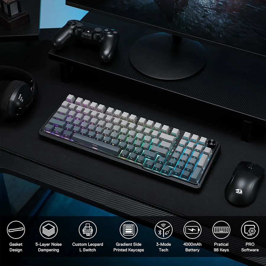 کیبورد بی سیم مکانیکال گیمینگ ردراگون Redragon EISA K686 SP PRO RGB با طراحی مدرن گسکت، تجربه تایپ نرم و بیصدا را ارائه میدهد. استفاده از پوششهای قفلشونده دقیق بهجای پیچهای سنتی، باعث کاهش نویز و افزایش انعطافپذیری در هنگام استفاده میشود. این طراحی خاص، بازخورد یکنواختی در زمان تایپ ایجاد میکند و صدای سفت و خشکی که معمولاً در کیبوردهای مکانیکال وجود دارد را به حداقل میرساند. در نتیجه کاربر حتی در محیطهای ساکت نیز میتواند با آرامش کامل تایپ یا بازی کند.