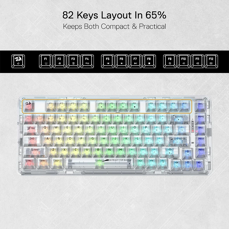 چینش ۸۲ کلیدی در K649 باعث حفظ ابعاد کوچک و در عین حال افزایش کارایی شده است. فضای بیشتری برای حرکت ماوس وجود دارد و کلیدهای عملکردی در بالا تعبیه شدهاند. علاوه بر آن، قابلیت هاتسواپ پیشرفته امکان تعویض سریع سوییچها را فراهم میکند. این ویژگی برای گیمرها و تایپیستهای حرفهای اهمیت زیادی دارد و انعطاف کامل در سفارشیسازی را فراهم میآورد.