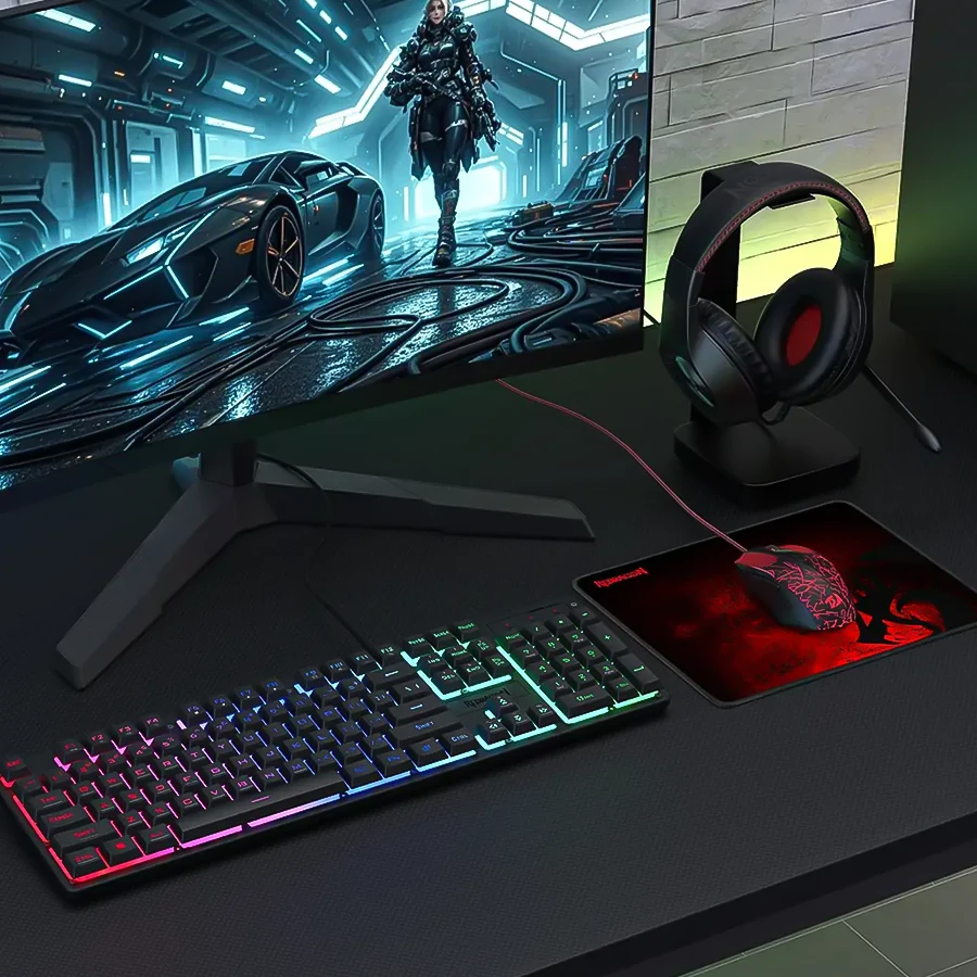 باندل گیمینگ ردراگون Redragon Essentials S107P-BA یک مجموعهی چهار در یک شامل کیبورد، موس، هدست و موسپد است. این پکیج برای گیمرهایی طراحی شده که به دنبال یک راهحل کامل و مقرونبهصرفه هستند. طراحی هماهنگ اجزا باعث میشود ظاهر ستاپ گیمینگ جذابتر و حرفهایتر به نظر برسد. نورپردازی RGB در همه بخشها جلوهای مدرن و پویا به میز بازی شما میبخشد. این باندل راهی سریع و آسان برای ورود به دنیای حرفهای گیمینگ محسوب میشود.