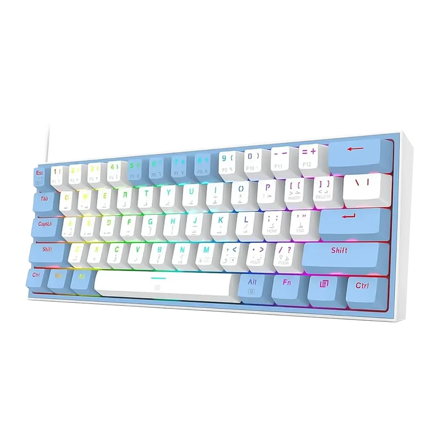 کیبورد مکانیکال گیمینگ ردراگون Redragon Fizz K617 WB RGB با طراحی ۶۰ درصدی بهطور هوشمندانه بخش نامپد و کلیدهای اضافی را حذف کرده تا فضای میز کار یا گیمینگ بهینه شود. در بازیهای رقابتی، بهویژه سبک FPS، داشتن فضای بیشتر برای حرکت آزاد ماوس اهمیت بالایی دارد. این کیبورد با ابعاد ۳۵×۹۹×۲۹۲ میلیمتر فضای کمی اشغال میکند و حملونقل آن بسیار آسان است. در عین جمعوجوری، تمام عملکردهای حذف شده از طریق ترکیب کلید Fn قابل استفاده هستند. این ویژگی باعث میشود بدون کاهش قابلیتها، تجربهای حرفهای و کارآمد داشته باشید.