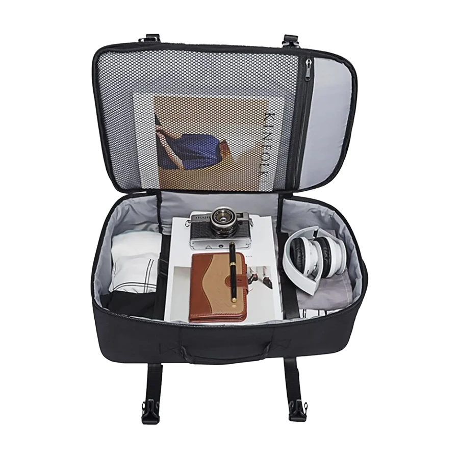 طراحان برای افزایش راحتی در حمل، قابلیت اتصال کیف به دسته چمدان را در بخش پشتی در نظر گرفتهاند تا جابهجایی در سفرهای کاری سادهتر انجام شود. ساختار کیف به توزیع متعادل وزن کمک میکند و فشار کمتری به شانه و کمر وارد میشود. این ویژگیها باعث میشوند کاربر بتواند در مسیرهای طولانی و استفادههای روزمره، بدون خستگی از این کیف استفاده کند.