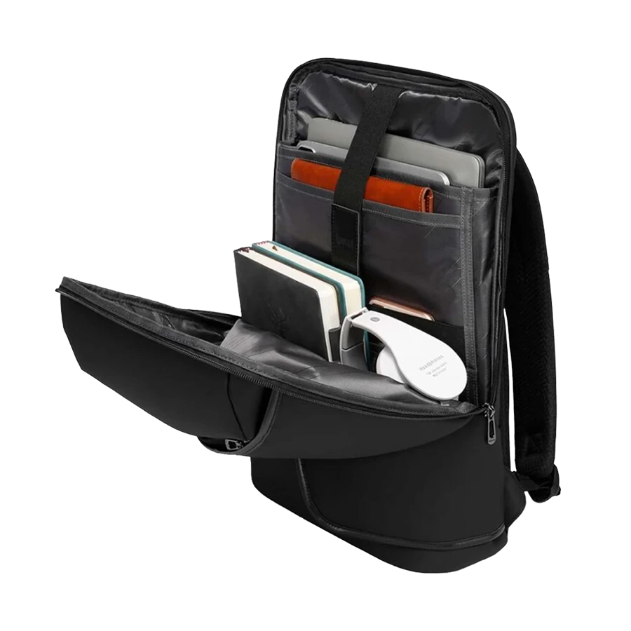 طراحان این مدل علاوه بر محفظه اصلی لپ‌تاپ، چندین جیب محافظ برای نگهداری موبایل، پاوربانک، شارژر و لوازم جانبی در نظر گرفته‌اند. جیب‌های مخفی نیز امکان نگهداری وسایل شخصی و ارزشمند را با امنیت بیشتر فراهم می‌کنند. ابعاد 30.5×46×18 سانتی‌متر فضای کافی برای قرار دادن کتاب، دفتر، هدفون و سایر تجهیزات روزمره ایجاد می‌کند و نظم داخلی کیف را به‌خوبی حفظ می‌نماید.