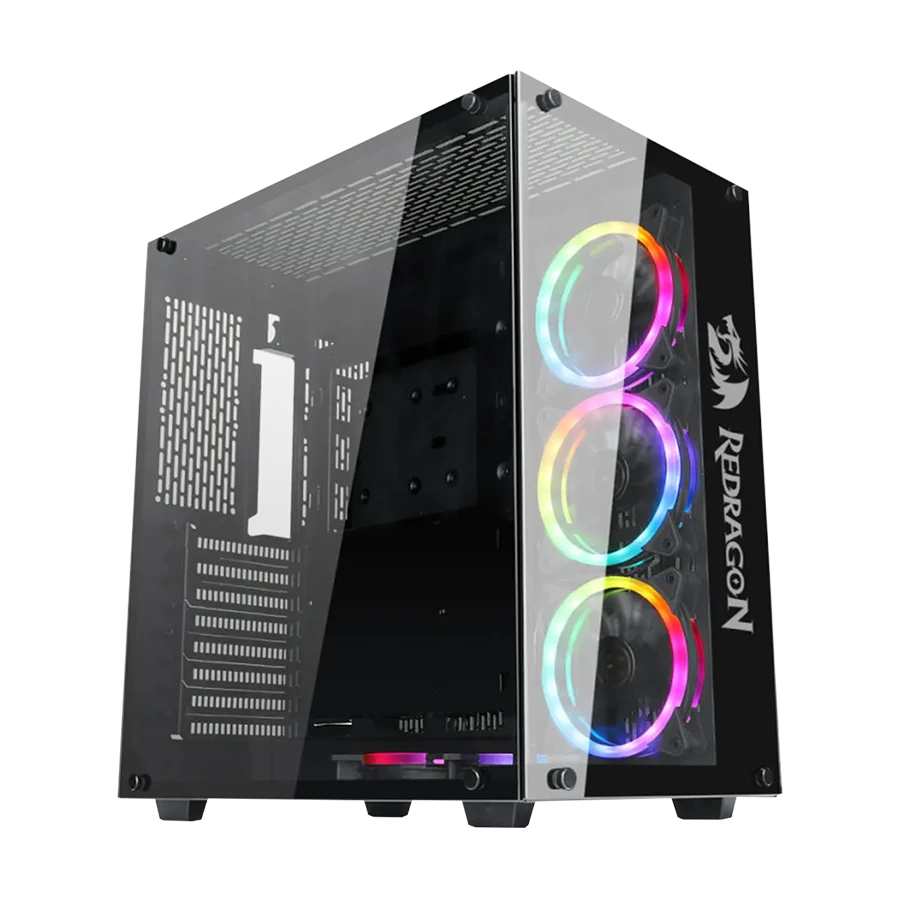 کیس گیمینگ ردراگون Redragon GC-802 با تمرکز بر استحکام و کاربری حرفهای طراحی شده است و بدنهای از استیل SPCC با ضخامت 0.8 میلیمتر در اختیار کاربر قرار میدهد. پنل جلویی شیشهای با درجه سختی بالا و پنل جانبی شیشه حرارتی، نمایی مدرن و مقاوم ایجاد میکنند و ساختار کلی کیس، ایستایی مناسبی برای نصب قطعات سنگین فراهم میسازد. این طراحی، هم دوام طولانیمدت را تضمین میکند و هم جلوهای حرفهای به سیستم گیمینگ میبخشد.