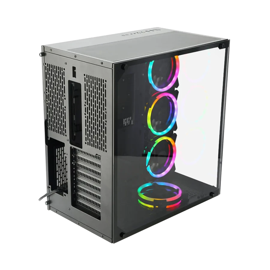 طراحان این مدل را به چهار فن 120 میلیمتری نصبشده مجهز کردهاند و امکان نصب حداکثر هفت فن را در بخشهای مختلف کیس فراهم کردهاند. سه فن در پنل کناری، یک فن در کف، یک فن در پشت و دو فن در سقف قابل نصب هستند و جریان هوای مؤثری در تمام فضای داخلی ایجاد میشود. این ساختار خنککنندگی، دمای قطعات را در سطح پایدار نگه میدارد و عملکرد سیستم را در استفادههای طولانیمدت حفظ میکند.