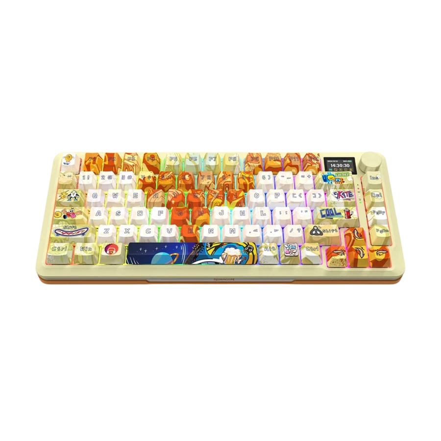 کیبورد Redragon K708GF به نورپردازی RGB با ۱۶.۸ میلیون رنگ مجهز شده که امکان شخصیسازی گسترده را فراهم میکند. کاربران میتوانند از افکتهای نوری متنوع استفاده کرده و کیبورد خود را مطابق با سلیقه شخصی و محیط گیمینگ خود تنظیم کنند. ترکیب نورپردازی پیشرفته با نمایشگر رنگی، جلوهای حرفهای و جذاب به این کیبورد بخشیده است.